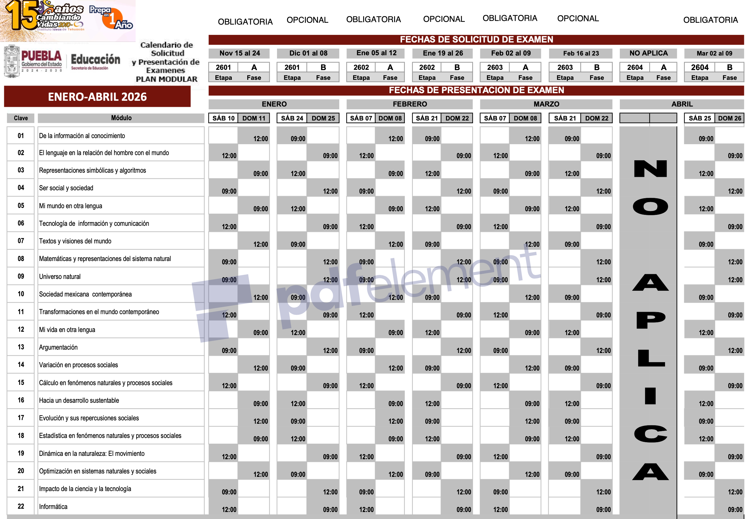 calendario de exámenes